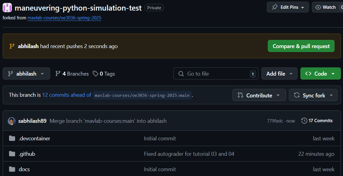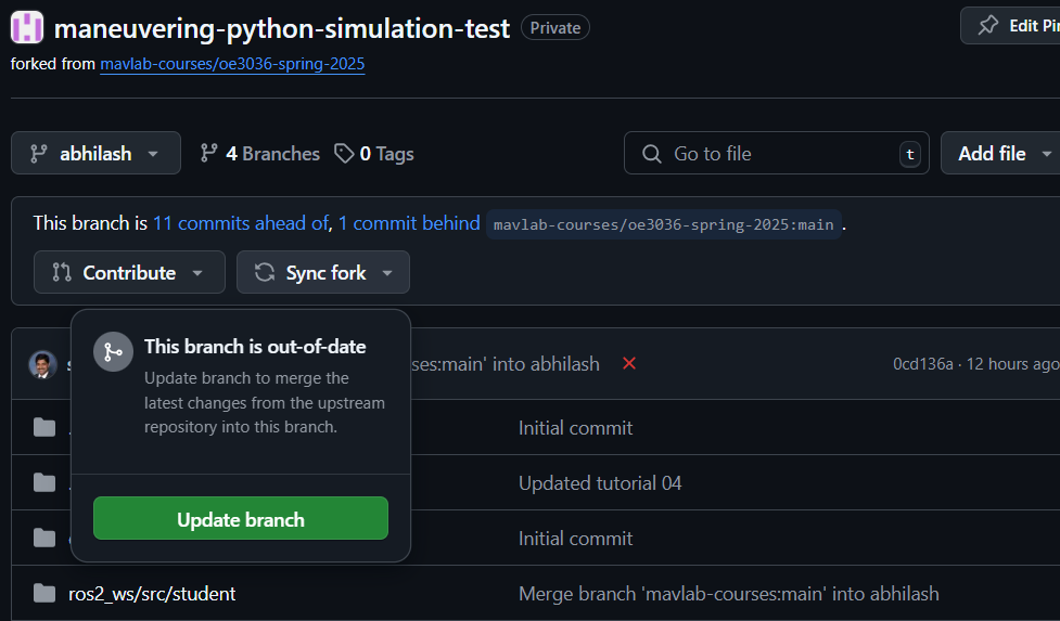 This branch is XX commits ahead of, 1 commit behind mavlab-courses/oe5005-spring-2025:mainSee the Figure A.5 below for an example.